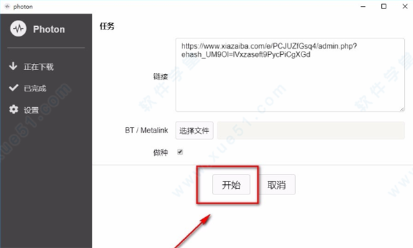 5、接下来我们在界面上找到“开始”按钮,点击该按钮就可以开始下载文件了。