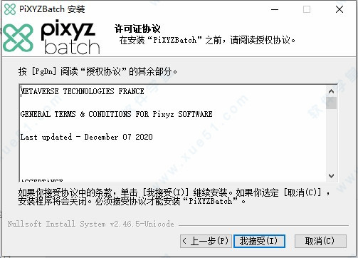 安装向导默认设置的软件默认安装路径为C:Program FilesPiXYZStudio。