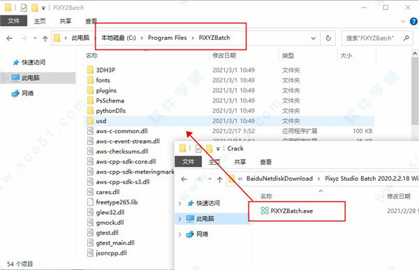 1、在软件学堂下载软件压缩包并且解压获得软件安装文件以及破解文件。