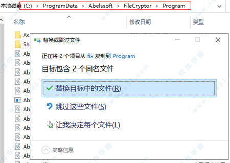4、打开破解文件将里面的破解文件都复制到软件安装的根目录下粘贴替换。默认安装路径【C:\ProgramData\Abelssoft\FileCryptor\Program】