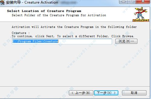 5、安装位置选择Creature安装根目录,如果安装原程序时没有更改,这里默认即可。