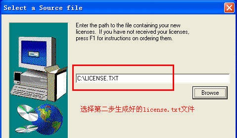 18、选择第二步存放在c盘的LICENSE.TXT文件。