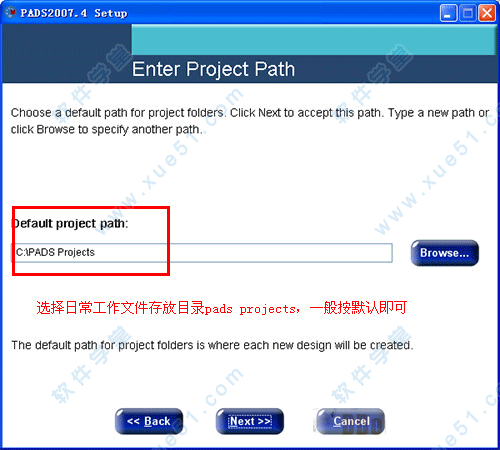 9、选择日常工作文件存放目录pads projects,一般按默认即可。