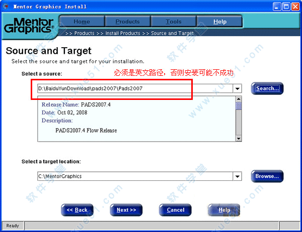 12、选择软件安装源路径“select a sourse location”,简单的说就是你下载软件的目录,必须是英文路径,否则安装可能不成功;