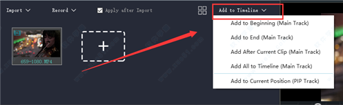 然后点击“添加到时间轴”以手动确定视频在时间轴上的位置。