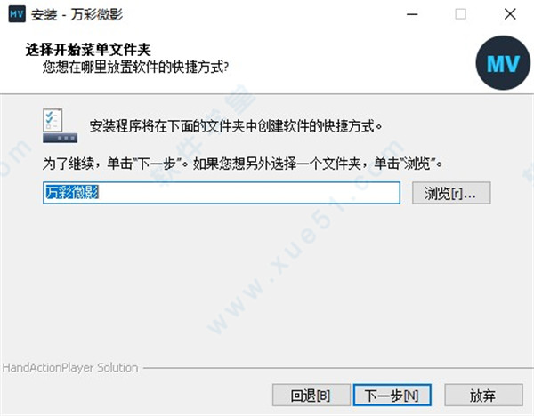 5、开始菜单栏文件夹创建,默认名可以修改,不修改的话直接点击下一步继续安装也无所谓。