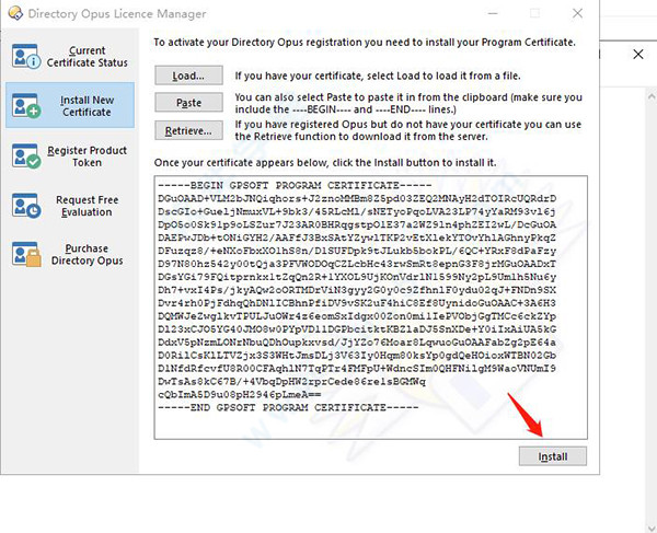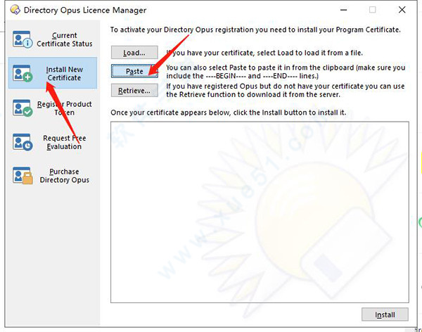 4、打开之后选择Install New Certicate,点击Paste;