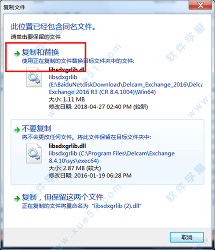 3、打开解压包中的“win64”文件夹,将该文件夹中的“libsdxgrlib.dll”复制到软件的安装目录下,默认安装目录“C:Program FilesDelcamExchange 8.4.10sysexec64”。