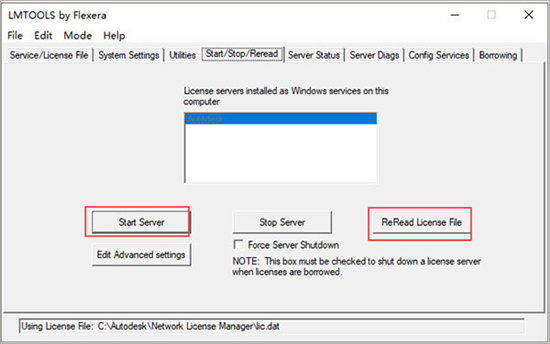 13、在start/stop/read点击start server,点击rereadlicense file。