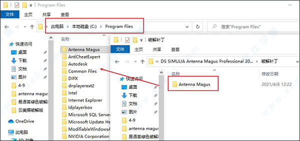 5、将破解补丁中的Antenna Magus文件夹复制到以下目录中进行替换;