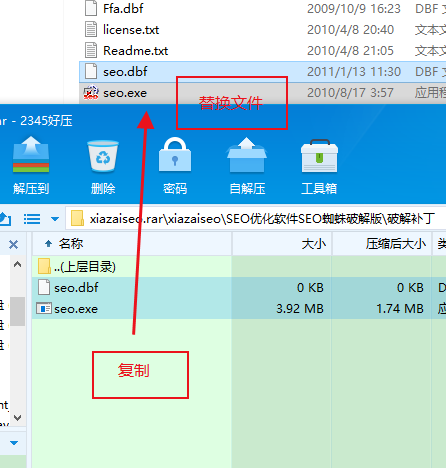 4、将补丁中的文件复制到安装的文件中替换原文件。