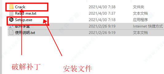 1、在软件学堂下载该软件压缩包并且解压获得软件安装文件以及crack文件。