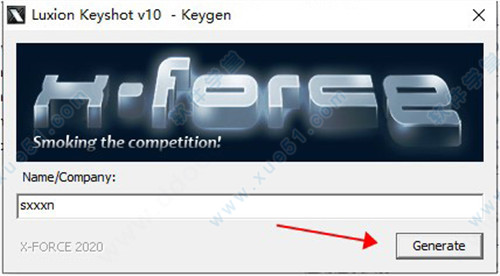 6、运行crack目录下载的Keygen注册机,点击generate生成KeyShot10.ilc文件。