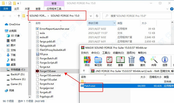 1、在软件学堂下载MAGIX SOUND FORGE Pro 15破解版压缩包并且解压获得软件安装文件以及破解补丁。
