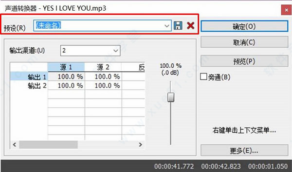 2、在声道转换器功能面板中,大家主要使用到的是其预设功能。