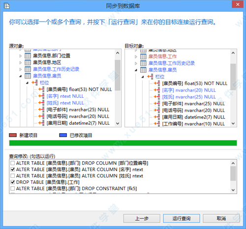 同步到数据库功能给你充分了解所有数据库的差异。生成必要的同步脚本来更新目标数据库,并使其与模型相同。