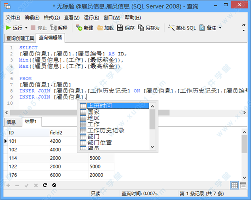 使用我们的自动完成代码功能,能快速地在 SQL 编辑器中创建 SQL 语句。无论你想选择的是数据库对象的属性或 SQL 关键字,你只需从下拉列表中选择。