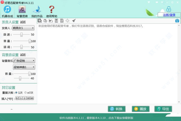 专业软件,简单易用,好易迅配音专家专注解决语音合成,语音识别兼容windowsXP以上所有操作系统版本,给您全新体验!
