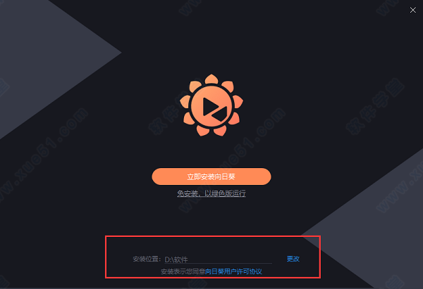 2、这里建议将文件安装在D盘,点击“立即安装向日葵”即可进入下一步。