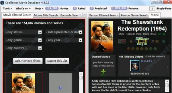 1、大型的百科全书的视频收藏器。该软件的下载版本只有14MB,同时你可以获得包含68000个人物和33000个电影的数据库。