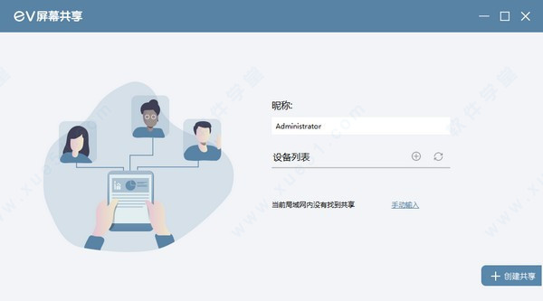 EV屏幕共享官方电脑版是由一唯科技推出的电脑屏幕共享软件。很多朋友都觉得在手机上打游戏或者看视频时,屏幕太小,没有大屏那味。所以小编今天为你找到了这样的一款屏幕共享软件。支持局域网搜索和手动输入两种连接方式,在连接了同一个局域网的前提下,它可以让使用者的电脑和手机共同分享一个屏幕。用户也可以加入别人的共享界面,观看他人的画面。相较于其他的软件来说,它不仅可以为您带来一体式的屏幕共享的强大功能,而且在在使用上也是非常的简单。只要连接了手机和电脑之后,就可以通过它共享所有的程序,不管是打游戏还是看电影,都可以非常完美地支持,而且共享画面也是高清级别的。另外,使用EV屏幕共享软件进行共享观看时,你还可以接受和发送传输的文件,用起来非常的方便。如果你还在为找不到屏幕共享软件苦恼,不妨来试试它。