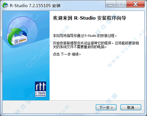 解压压缩包,双击“R-Studio V7.2.155105 Setup.exe”即可开始安装软件。软件已经进行了完美破解,安装完成后就是破解版了。