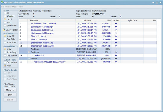 如果您通过将文件移动到不同位置来重新组织文件夹,Synccovery 将检测到这一点并在同步的另一端快速执行相同的移动,而不是删除和重新复制文件。