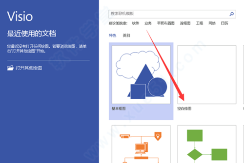 打开文件文档,选择一种模板如:“基本流程图”点击创建