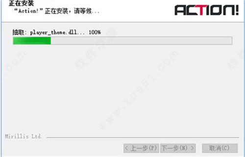 1、在软件学堂内下载到mirillis action汉化破解版的压缩包然后进行解压,在文件内双击.exe文件进行安装,默认中文,点ok。
