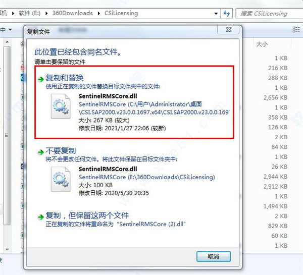 12、然后将SentinelRMSCore.dll复制到安装目录的CSiLicensing文件夹下替换原文件即可破解软件。
