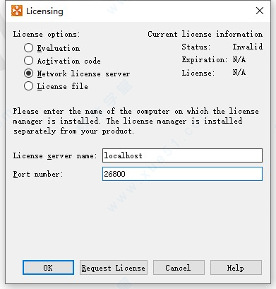 12、运行软件,当被问及许可证时,选择“网络许可证”并给出“许可证服务器名称”: