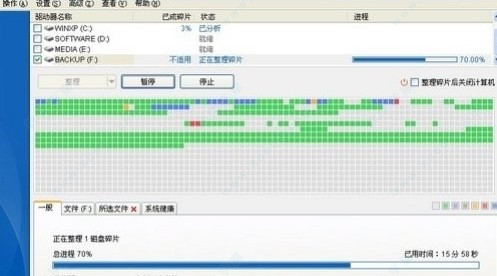 6、软件碎片整理虽比系统自带工具快许多,但耗时仍比较久;70G的F盘碎片整理一共耗时26分,如图所示: