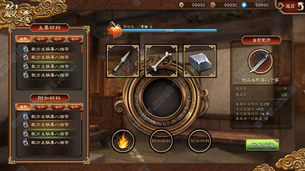 玩家前往杭州可开启锻造系统,可放入指定的配方材料后,开始进行游戏