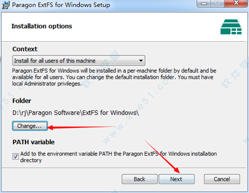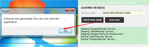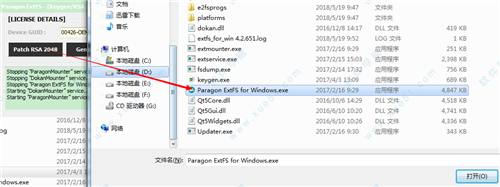 5、运行注册机,点击path,将安装目录下的Paragon ExtFS for Windows.exe程序和extservice.exe程序导入进来