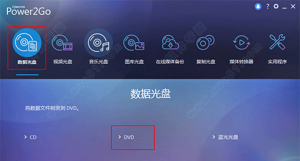 1、小编以刻录数据光盘为例,选择数据光盘--dvd;