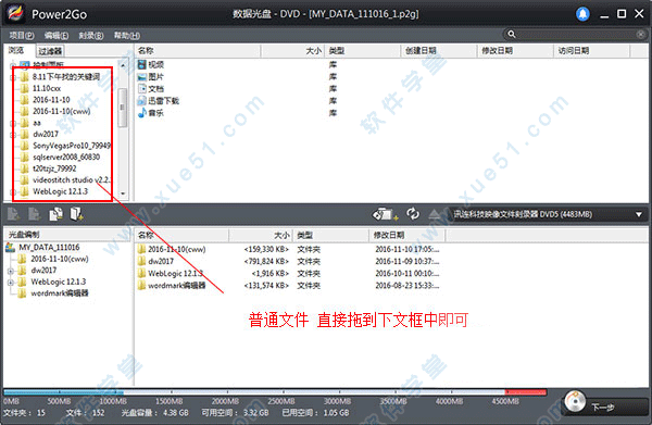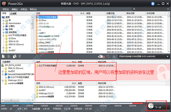 4、现在用户可以将加密的文件拖放到这里,最后点击下一步刻录即可。