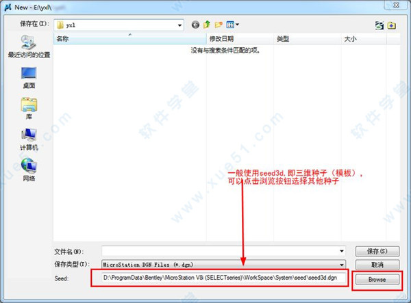 选择种子文件,在此新建一个test.dgn的工程文件。