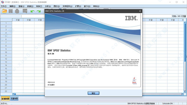 Spss26全称为Ibm Spss Statistics 26,它是来自国外的一款专业的数据统计分析软件。平时在我们的工作生活中,你是不是经常会被各种复杂、庞的数据给弄的焦头烂额呢,有了这款软件就再也不用担心处理繁杂的数据问题了,它强大的数据统计、文本分析功能可帮助用户轻松处理各类数据,进行数据分析,简化我们的工作流程,让你轻松完成项目统计。软件页面简洁,多种功能分布直观明了,非常适合新老用户的使用。其强大的软件功能,可支持多种行业的统计分析工作,支持数学数据统计、多工程数据统计,开发数据统计,编程数据分析等等,还可帮助我们直接在软件中建立多种图表分析数据,建立直观的数据模型分析图,各类数据分析一目了然,清晰直观,是非常不错的一款数据分析软件。