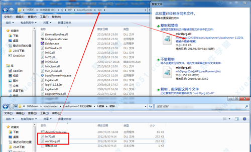 5、关闭所有与之相关的程序后将解压文件中的破解补丁“mlr5lprg.dll”、“lm70.dll”复制到软件安装目录下的bin目录,点击复制和替换。