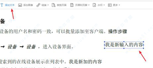5、点击工具栏上的“添加文本”,鼠标会变成A,在任意地方点击即可以输入文字。