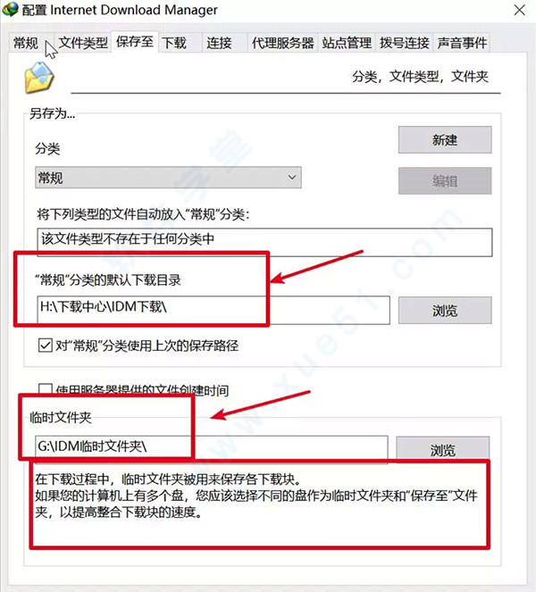 第二点就是建议大家将I下载目录和临时文件夹设置在不同的盘符下,好处就是可以加快下载快的整合,从而快速获取最终资源。例如我的下载目录设置在H盘,而临时文件夹则设置在G盘,如下: