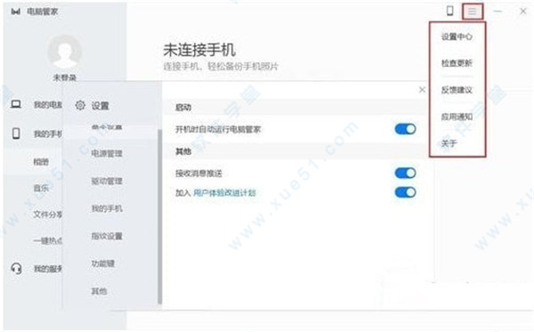 设置中心,电脑管家、驱动管理、指纹设置、智能省电、超级省电等开启功能键设置简单,手机共享文件存储位置、切换键盘的功能键/热键模式设置一目了然。