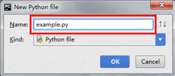在 Name 一栏输入文件名即可,记得添加 .py 后缀,点击 OK 之后就可以开始写下