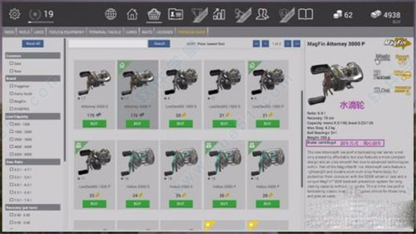 线:目前游戏里提供三种线:mono line单线(尼龙线),braid line编织线,fluoro line碳线(碳氟复合线),不同的线适用的场合不同,各有优缺点。