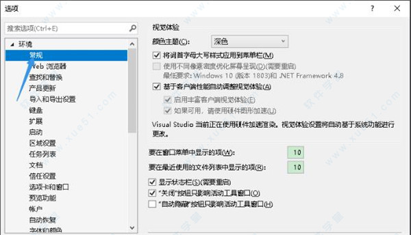 3、进入到选项窗口中,点击环境选项下的常规选项,来进行相关的设置操作。