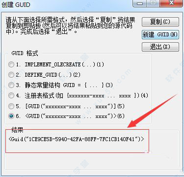 3、这样就会弹出了一个创建guid的窗口的界面当中,进行点击第六个中。