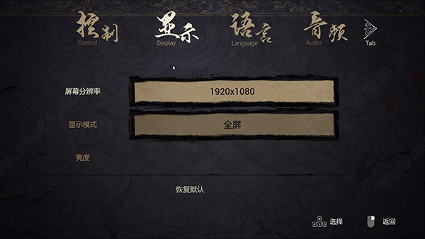 5、也可以对显示设置进行设定,比如游戏的亮度、显示模式以及分辨率。
