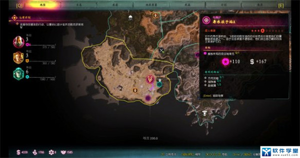 2、作为一款开放世界游戏,在玩法上并没有特别的创新,任然用了育碧的那套开放世界玩法。抢占地图上一个一个的据点。每个据点有一个固定的任务,比如消灭全部敌人。同时会有方舟箱子若干(内有技能点),以及普通补给箱若干(内有飞铁和现金)