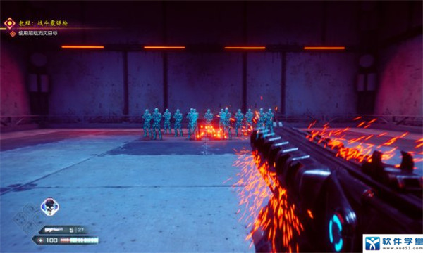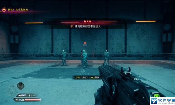 接下来会进入教程,战斗霰弹枪有两种攻击模式,左键为正常攻击右键瞄准后会将子弹压缩攻击能够击飞敌人。
