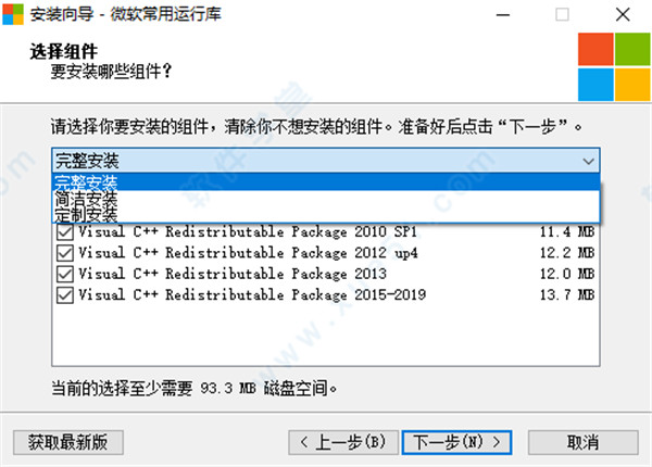 3、然后我们可以看到各种运行库文件,选择你需要的文件勾选安装,也可以直接完整的安装,将所有常用的文件都安装,选择完成后直接点击下一步。